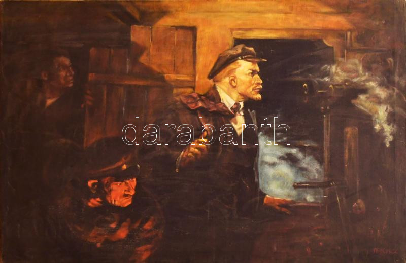 Olvashatatlan jelzéssel, feltehetően szovjet festő: Lenin. Olaj, vászon. 100×150 cm. KIZÁRÓLAG SZEMÉLYES ÁTVÉTEL, NEM POSTÁZZUK! / oil on canvas, with unreadable signature, ONLY PERSONAL COLLECTION AT OUR OFFICE!