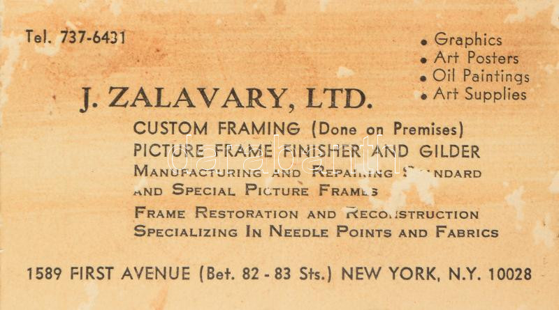Takács jelzéssel (Takács Pál?): Szürrealista rajz, 1974. Tus, toll, papír. Üvegezett keretben, hátoldalán J. Zalavary new yorki képkeretező címkéjével. 25x28 cm