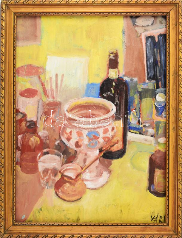 Vári jelzéssel: Csendélet. Olaj, vászon. Dekoratív fakeretben. 54x41 c...