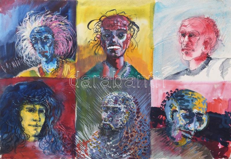 Végh Endre: Arcok. Tempera, papír, jelzés nélkül 35x50 cm