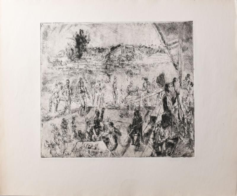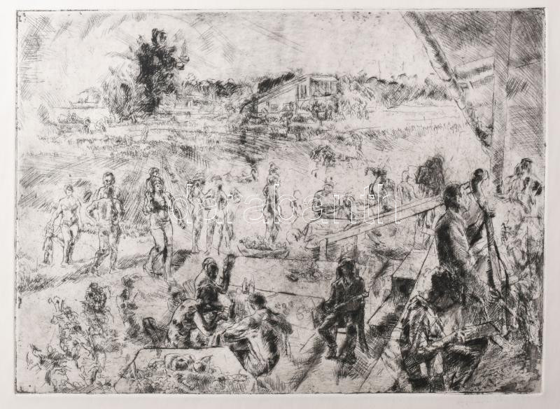 Aszódi Weil Erzsébet (1901-1976): Strandon (cím nélkül). Rézkarc, papí...