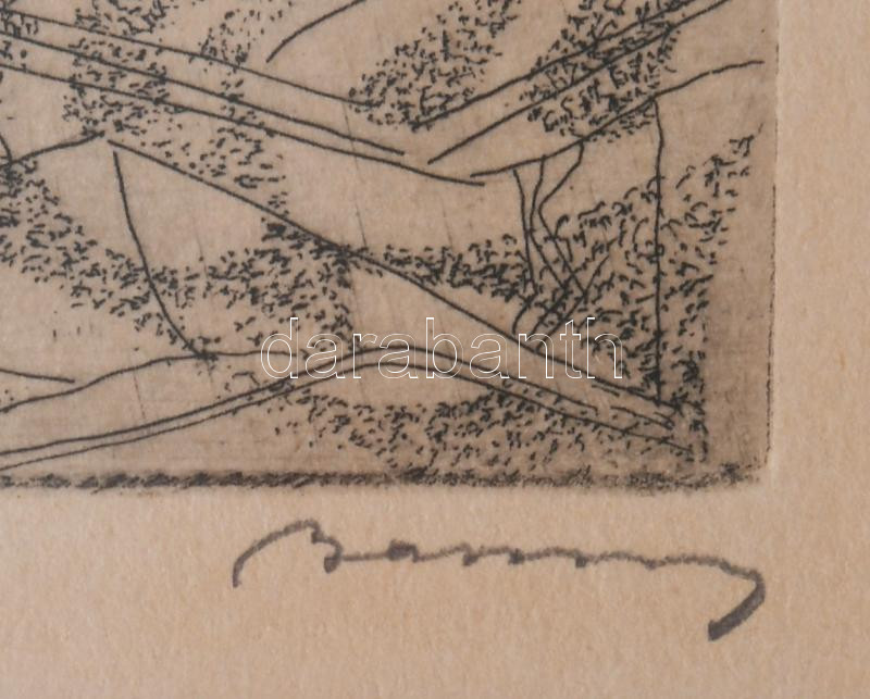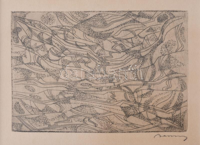 Barcsay Jenő (1900-1988): Táj. Rézkarc, papír, jelzett. Üvegezett fake...