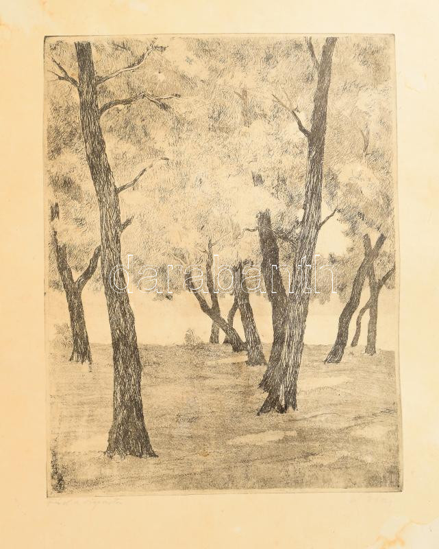 Biai-Föglein István (1905-1974): Fák a vízparton. Rézkarc, papír, jelz...