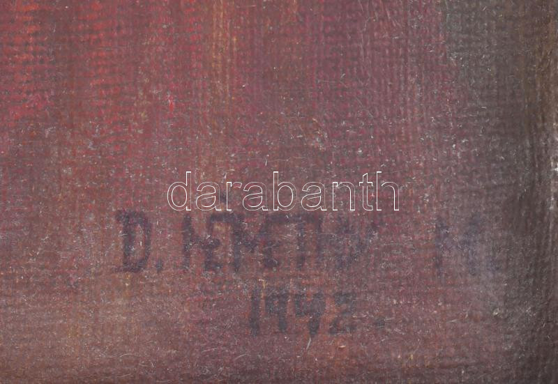 D. Némethy Miklós (1880-?): Vöröshajú lány portréja, 1942. Olaj, vászon. Jelezve jobbra lent. Fakeretben. 60x50 cm