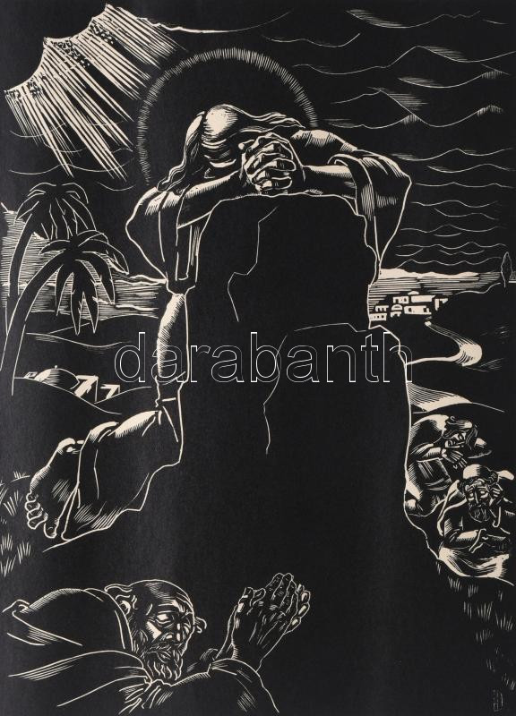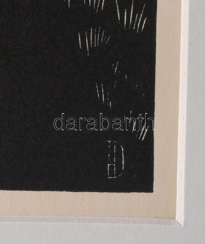 Dallos Hanna (1907-1944): "És ne vígy minket a kísértésbe...", fametszet, papír, jelzett a metszeten, paszpartuban, 28,5x20,5 cm