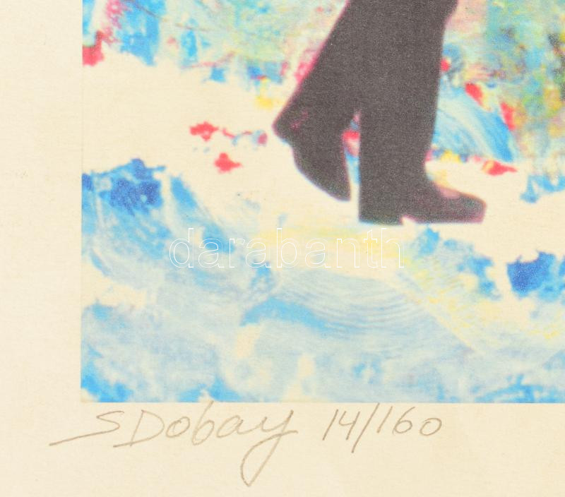 Dobay Zsuzsa (Susan Dobay, 1937-): Járókelők vidámparknál (cím nélkül). Nyomat, papír, jelzett, számozott (14/160). Lapszéli gyűrődésekkel. 34x25,5 cm