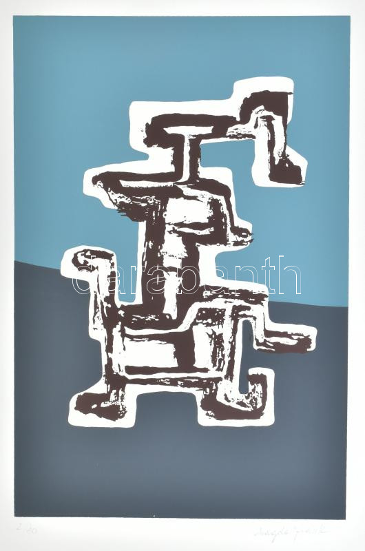Frank Magda (1914-1997): Szoborterv zöldben. Szitanyomat, papír, jelzett, számozott (2/40), 40x26,5 cm