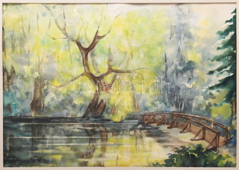 Gál Gabi (XX. sz. vége): Rátóti híd. Akvarell, papír. Jelezve balra lent. Fakeretben. 33x47 cm