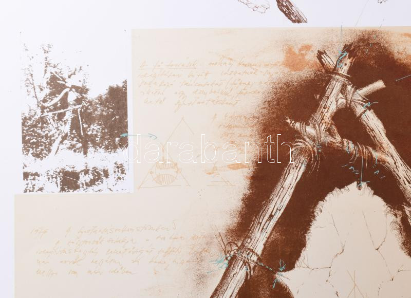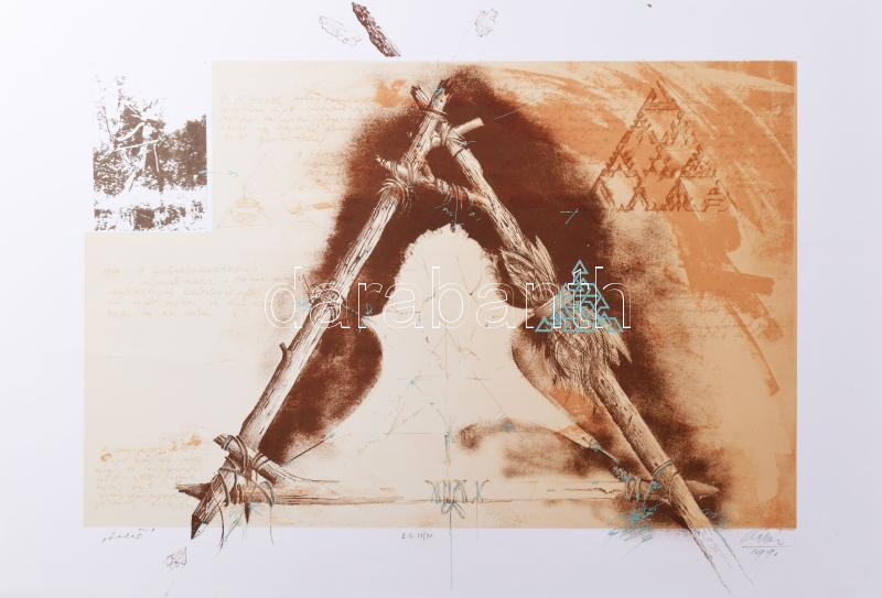 Gellér B. István (1946-2018): Lelet. Litográfia, papír, jelzett, művés...
