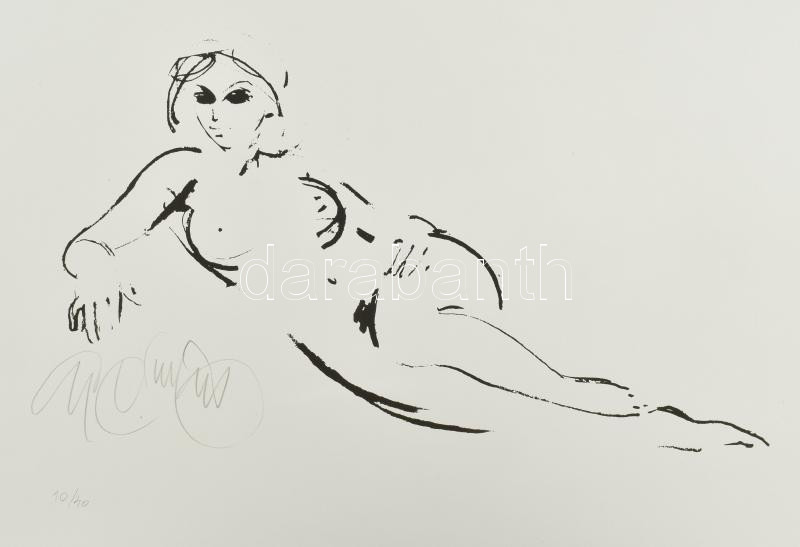 Gyémánt László (1935-): Fekvő női akt. Szitanyomat, papír, jelzett, számozott (10/40). 49x65 cm / Screenprint on paper, signed, numbered (10/40).