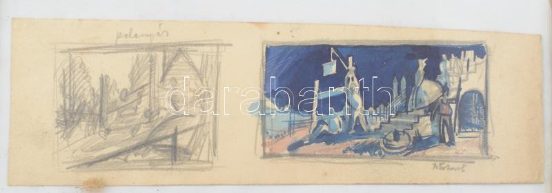 Istokovits Kálmán (1898-1990): Jelenet. Ceruza, akvarell, papír. Jelez...