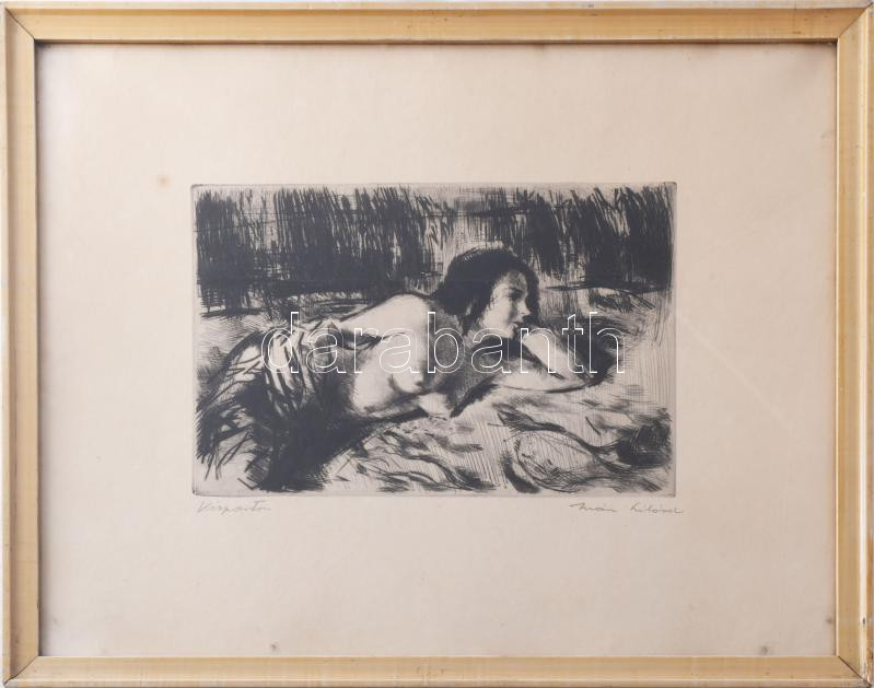 Iván Szilárd (1912-1988): Vízparton (női akt). Rézkarc, papír, jelzett...