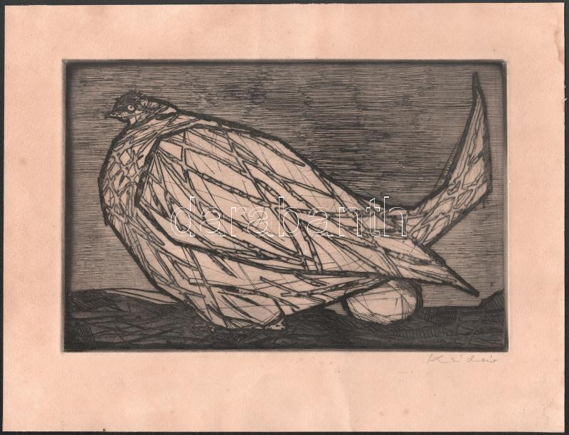 Kádár György (1912-2002): Tojását költő madár. Rézkarc, papír, jelzett...