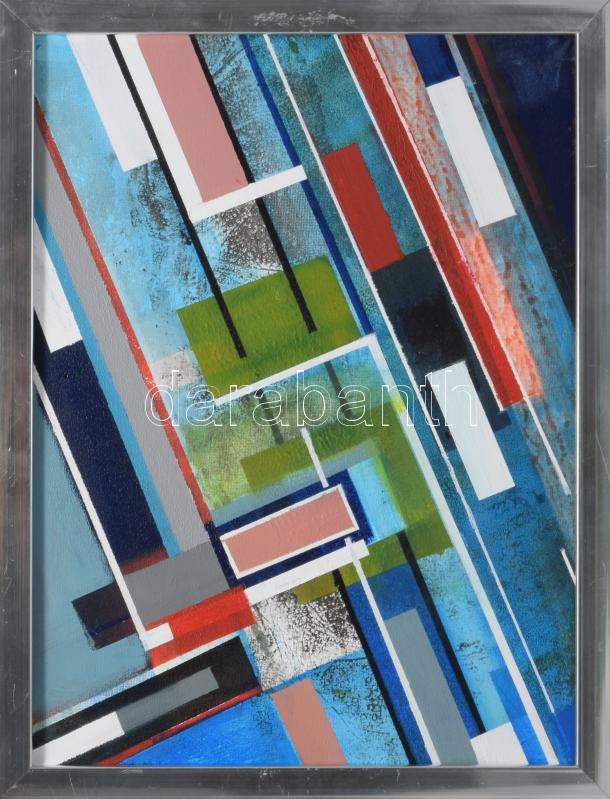 Koppány Attila (1947-): Diagonális kompozíció, 2025. Akril, vászon. Jelzett a hátoldalán. 40x30 cm. Dekoratív fakeretben.