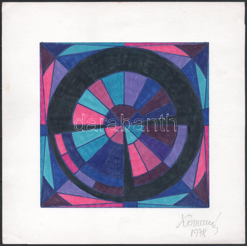 Koppány Frigyes (?-?): Körökörös kompozíció, 1978. Filctoll, papír, je...