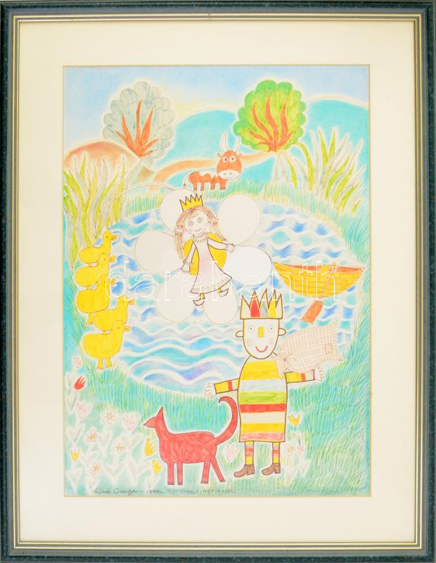 Kovács Orsolya: Égből pottyant mesék illusztráció I. Vegyes technika, papír, jelzett, üvegezett keretben. 43x31 cm