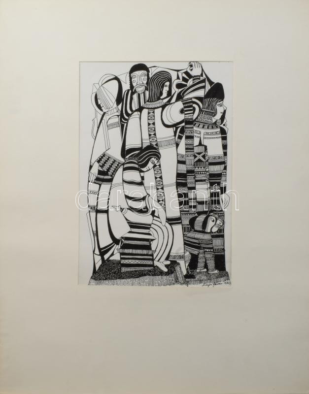 https://www.darabanth.com/en/514-Paintings-posters-ex-libris-auction/516.0/Paintings-and-graphics/Paintings-and-graphics~8/Lajos-Ferenc-1912-1998-Tarsasag-allattal-1985-Tus-papir-jelezve-jobbra-lent-paszpartuban~II3439870