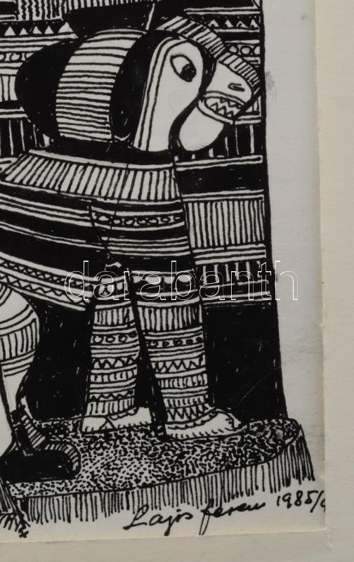 Lajos Ferenc (1912-1998): Társaság állattal, 1985. Tus, papír, jelezve...