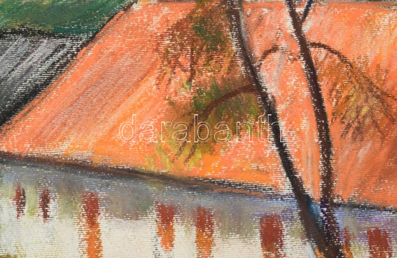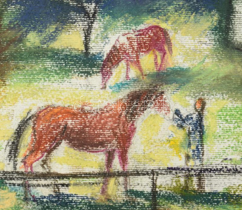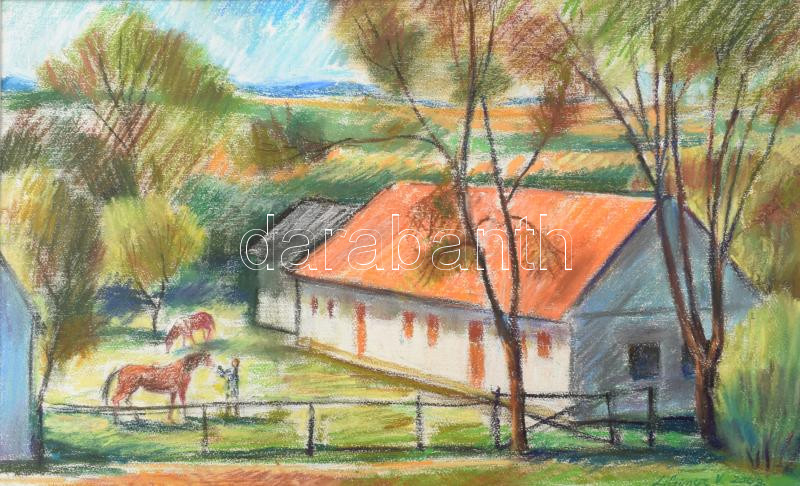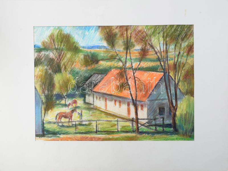 Lőrincz Vitus (1933-): Balatonfelvidéki lovastanya, 2003. Pasztell, pa...