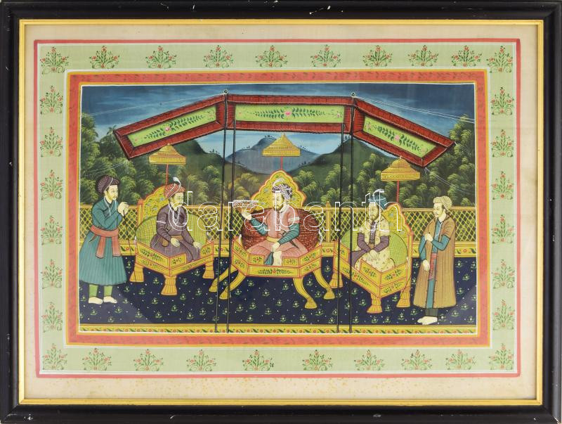 Maharadzsa tanáccsal. Akvarell, papír, üvegezett keretben 24x40 cm, 33...
