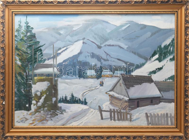 Márton Béla (1913-2007): Havas táj. Olaj, vászon, jelezve balra lent, ... https://www.darabanth.com/en/514-Paintings-posters-ex-libris-auction/516.0/Paintings-and-graphics/Paintings-and-graphics~8/Marton-Bela-1913-2007-Havas-taj-Olaj-vaszon-jelezve-balra-lent-hatoldalan-Zichy-Mihaly~II3481261