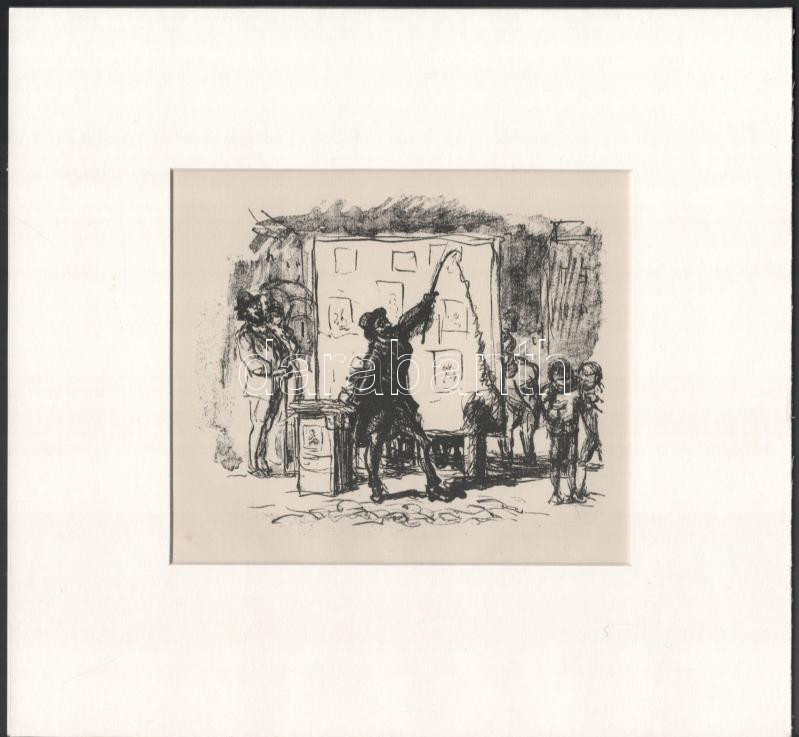 Max Slevogt (1868-1932): Der Bildermann, litográfia, papír, paszpartuban, jelzés nélkül, 15×17 cm
