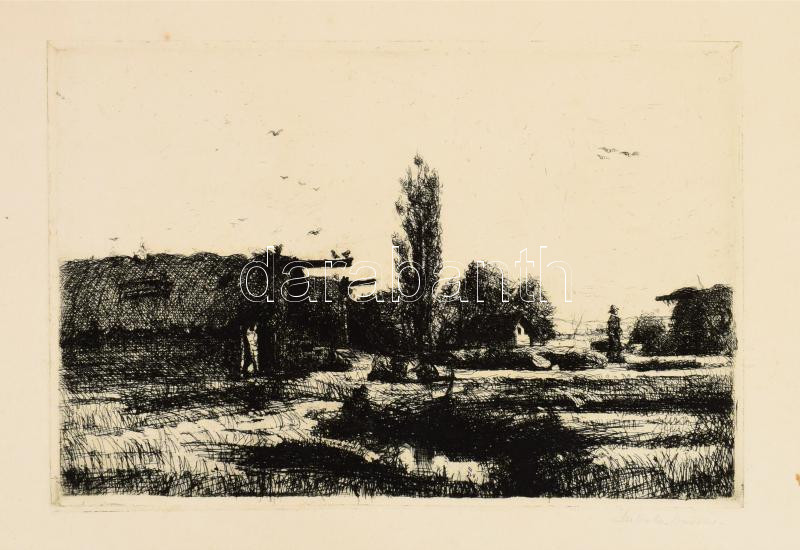Mikola András (1884-1970): Táj. Rézkarc, papír, jelztett, lapszéli apr...