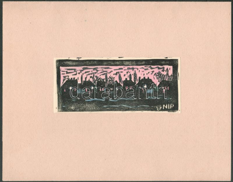 Nolipa István Pál (1907-1986): Esti fények. Színezett linómetszet, pap...