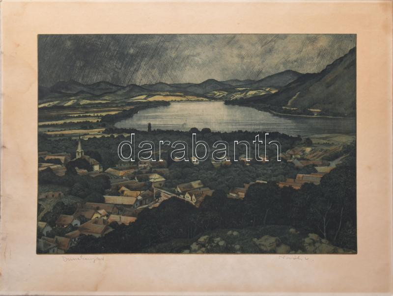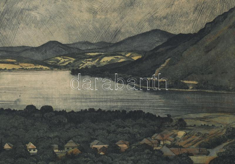 Novák Lajos (1927-1989) Dunakanyar. Rézkarc, papír, kartorna kasírozva...