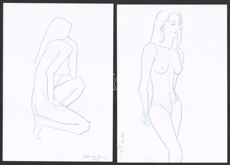 Olbert Mariann (1973-), össz. 7 db mű: Női akt. Ceruza, akvarellceruza, papír. Mindegyik jelzett. 16x23 cm