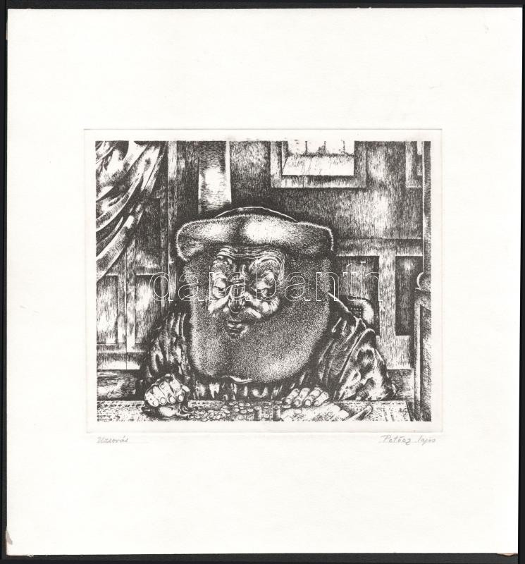 Petőcz Lajos (1919-2009): Uzsorás. Rézkarc, papír, jelzett, 17,5x20,5 ...