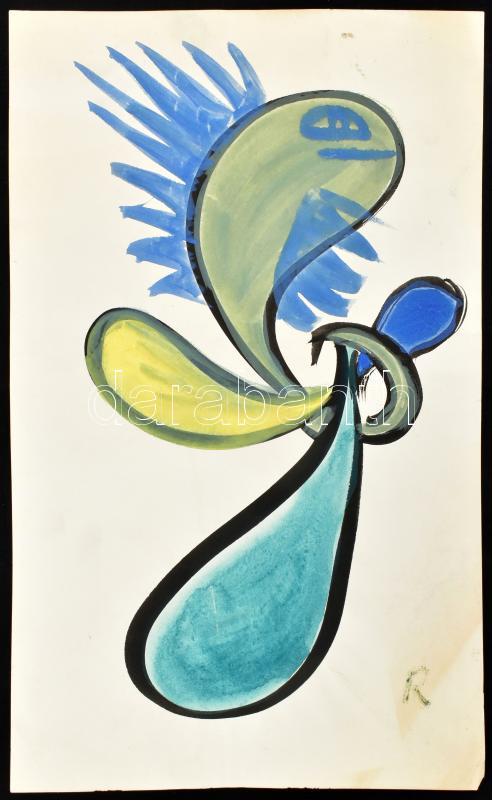 Rácz András (1926-2013): Kompozíció. Akvarell, papír, jelzett, 35,5x21,5 cm