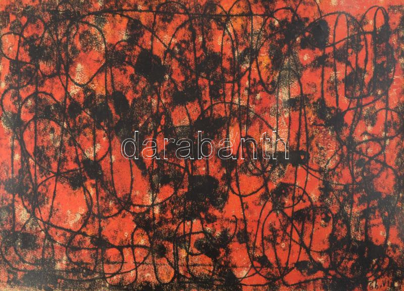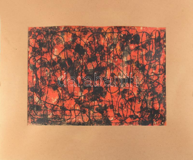 Szandai Sándor (1903-1978): Vörös-fekete kompozíció, 1966. Monotípia, ...