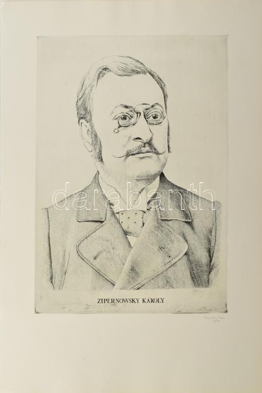 Szemethy Imre (1945- ): Zipernowsky Károly mérnök, a transzformátor egyik feltalálójának portréja, 1980. Rézkarc, papír, jelzett, 39x29 cm