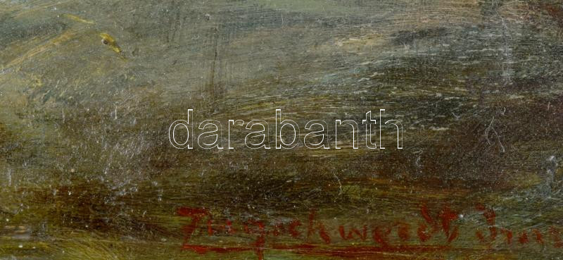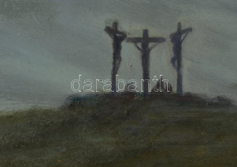 Zugschwerdt Imre (XX. sz. első fele): Golgota. Olaj, fa. Jelezve jobbra lent. Dekoratív keretben. 20x30 cm