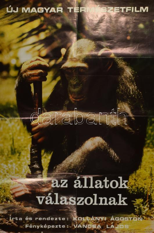 1979 Az állatok válaszolnak, filmplakát, ofszet, papír, jelzett a nyomaton (Vancsa-Sárközy), Offset és Játékkártya Nyomda, hajtásnyomokkal, kisebb lapszéli szakadással, 81,5x56,5 cm