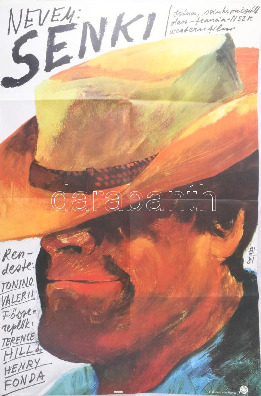 1981 Terrence Hill - Henry Fonda: Nevem senki c. film grafikus plakátj... https://www.darabanth.com/en/514-Paintings-posters-ex-libris-auction/516.0/Paintings-and-graphics/Posters~7/1981-Terrence-Hill-Henry-Fonda-Nevem-senki-c-film-grafikus-plakatja-Balogh-Istvan-1924-gra~II3476456