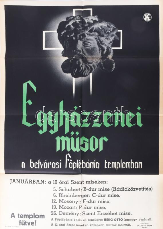 https://www.darabanth.com/en/514-Paintings-posters-ex-libris-auction/516.0/Paintings-and-graphics/Posters~7/ca-1940-Egyhazzenei-musor-a-belvarosi-foplebania-templomban-grafikus-plakat-Hajtva-jo-all~II3477028