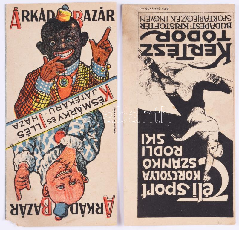 2 darab számolócédula, Késmárky és Illés Játékáru-háza, Kertész Tódor sportáru, sarokhibával.