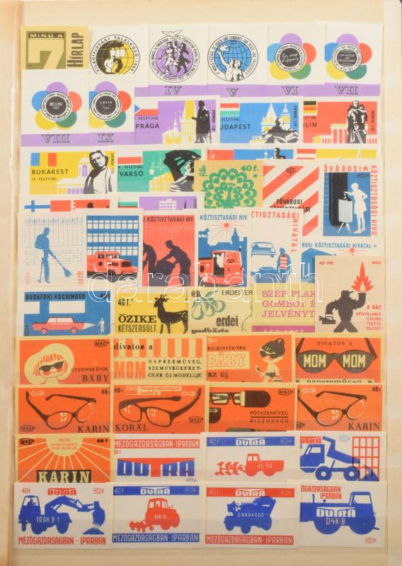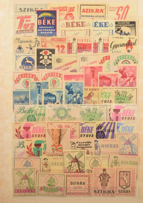 Gyufacímke-gyűjtemény, kb. 1400 db, magyar gyufacímke, berakóban