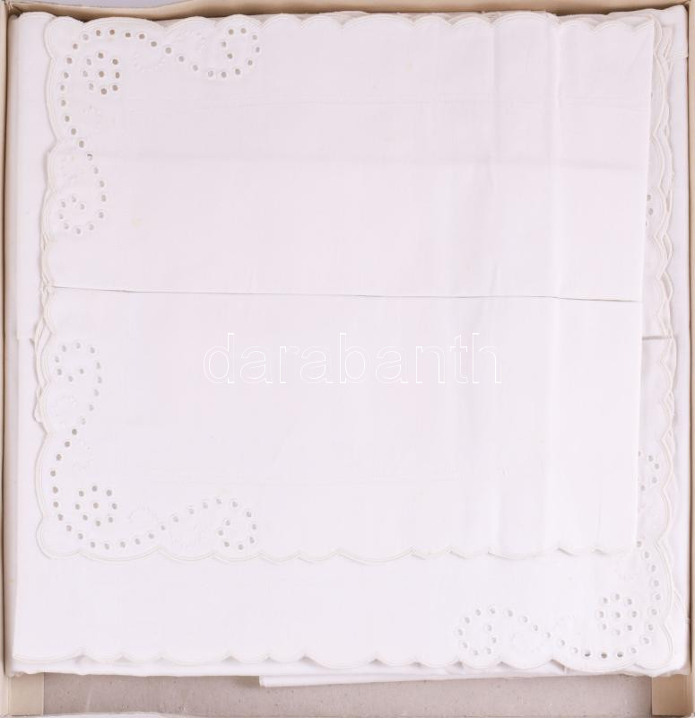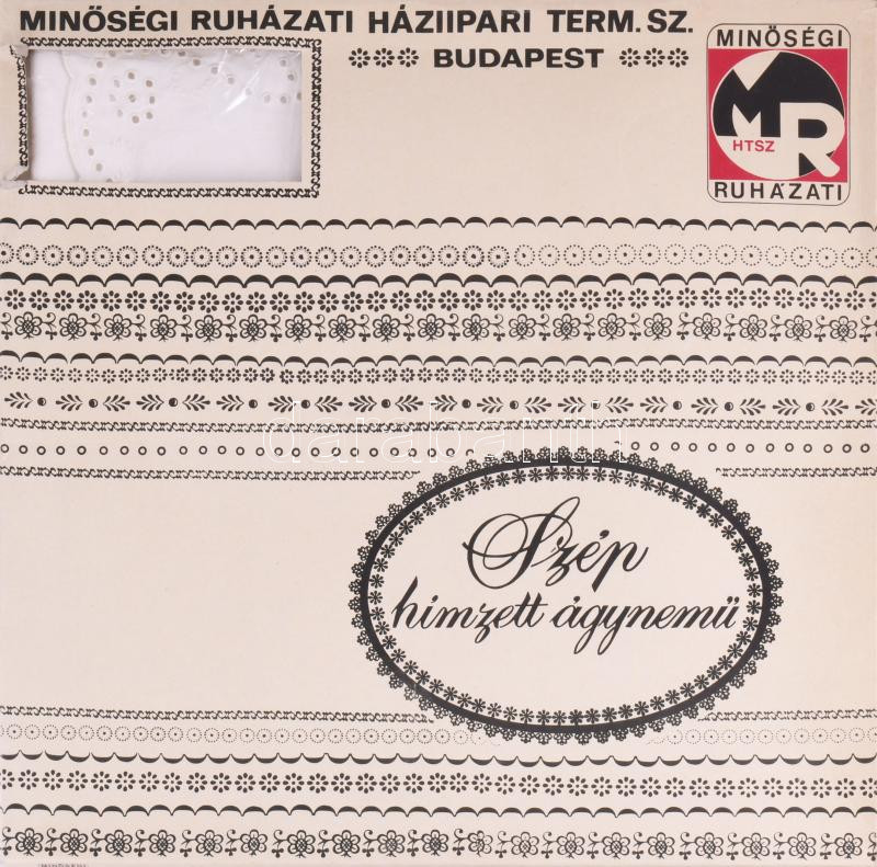 Háziipari Term. Sz. ágynemű garnitúra, dobozában.