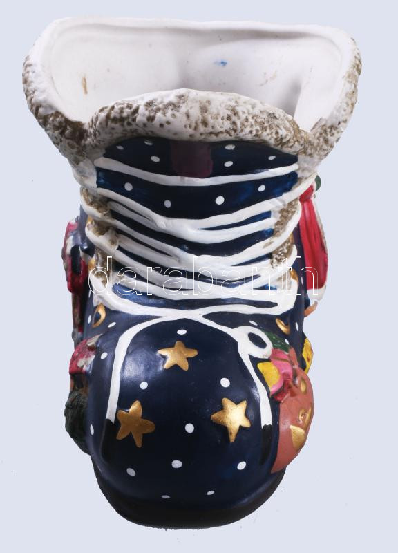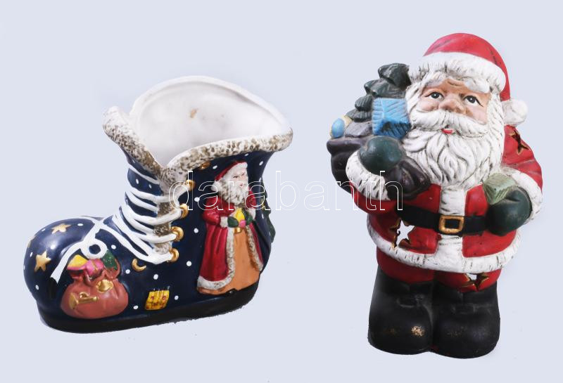 Karácsonyi porcelán csizma asztaldísz + mikulás mécsestartó, m: 13,5 c...