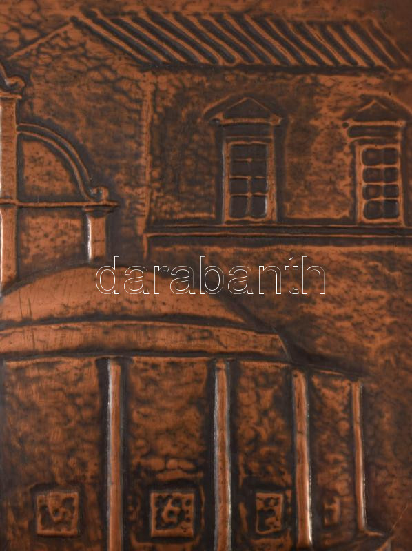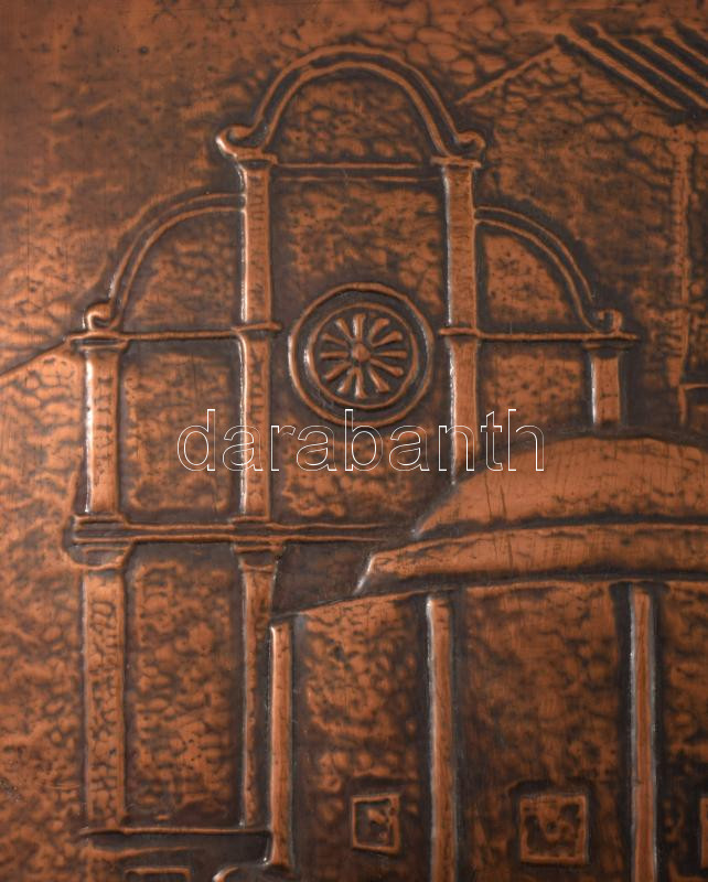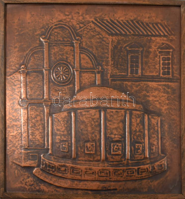 Rézlemez fal díszkép, keretben, 32x32 cm