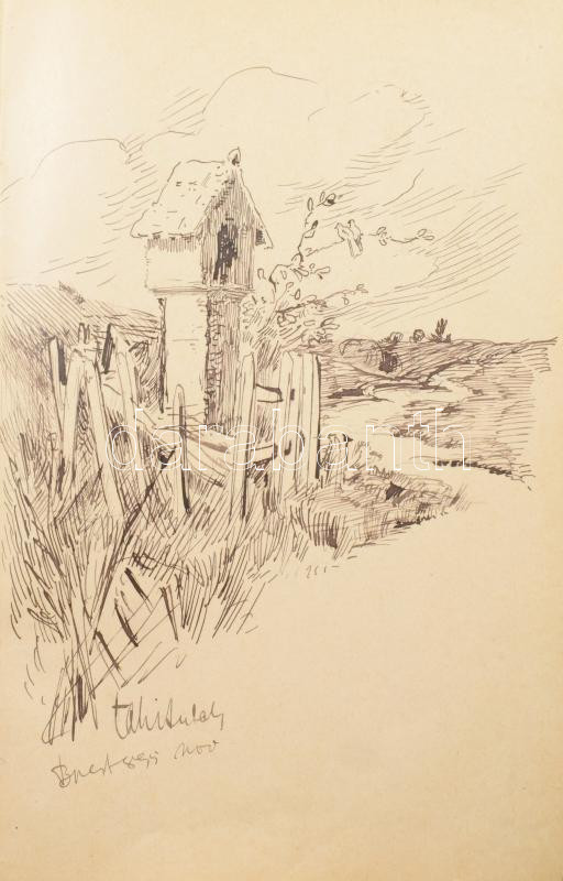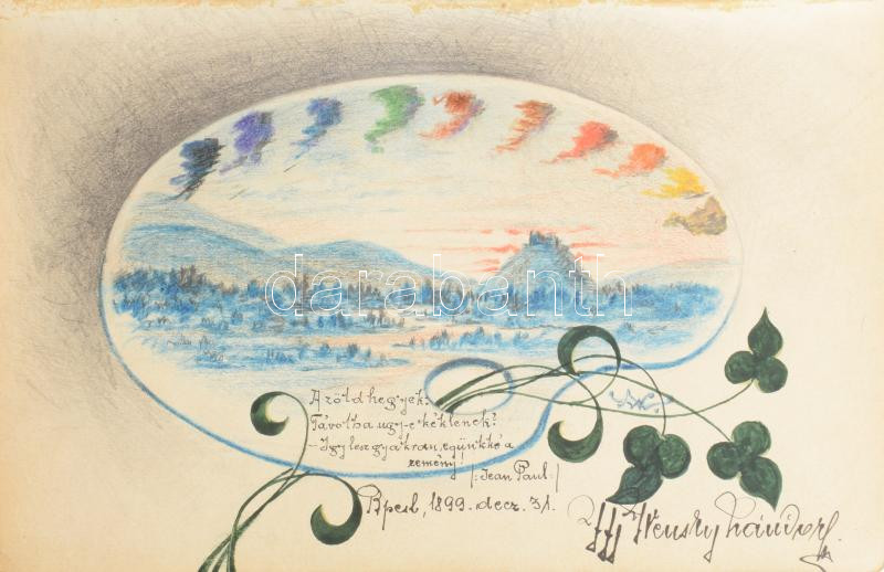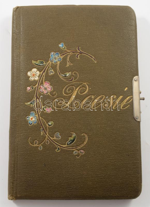 1894-1900 Régi emlékkönyv bejegyzésekkel, rajzokkal, benne egy szárított havasi gyopárt tartalmazó boríték is