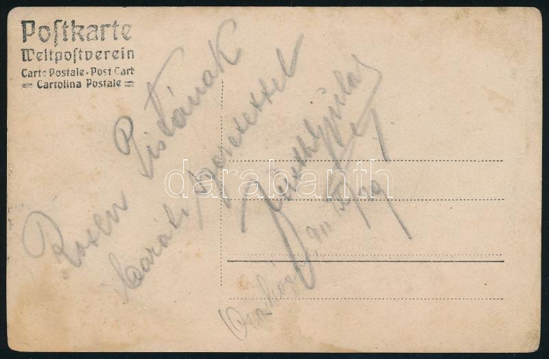 1911 Orosháza, Justh Gyula (1887-1955) színész dedikált fotólapja (,,Rosen Pistának baráti szeretettel Justh Gyula"), kissé foltos, 14x9 cm