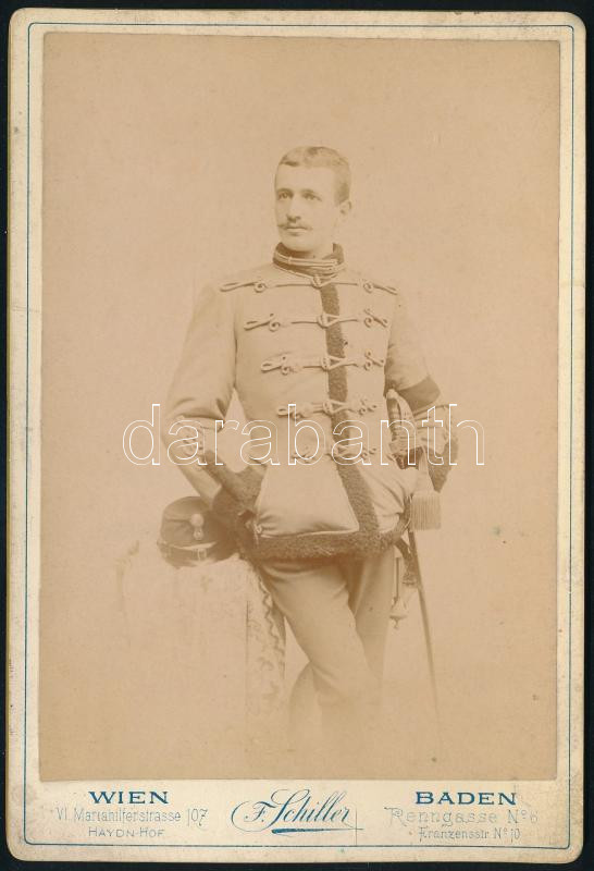 cca 1890 Huszár portréja, keményhátú fotó Schiller (Baden / Wien) műte...