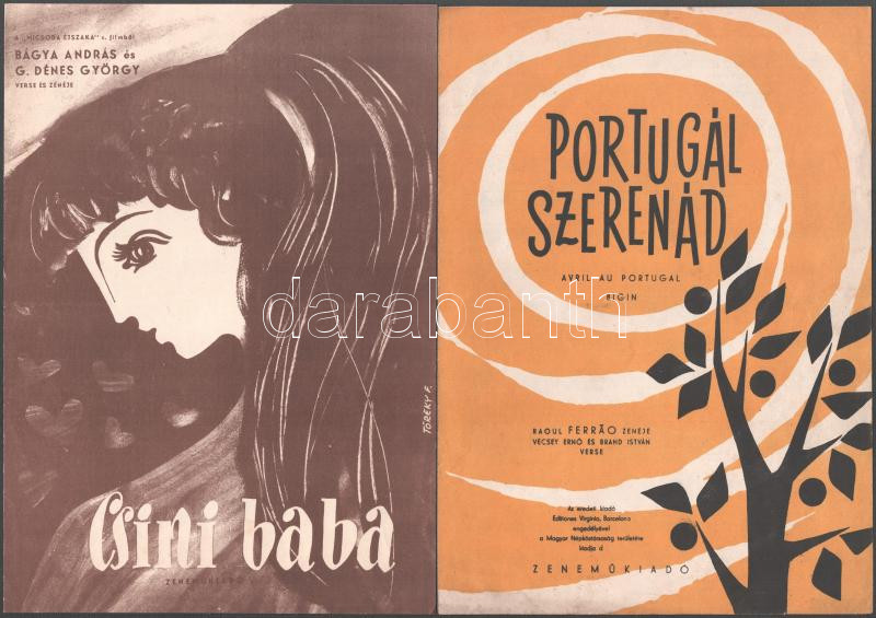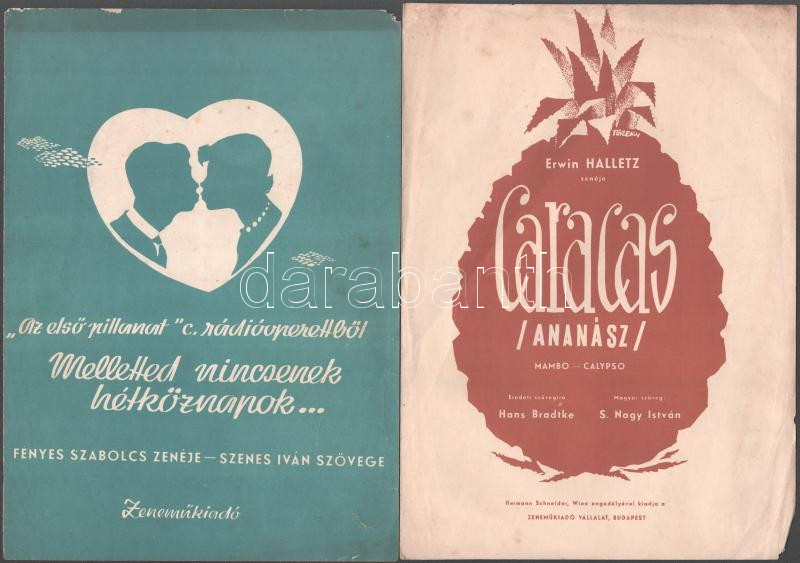 Vegyes kotta tétel, 4 db: Bágya András és G. Dénes György: Csini baba, Portugál szerenád, Melletted nincsenek hétköznapok..., Caracas (Ananász), közte foltos, egy-két sarkon kis sérüléssel.