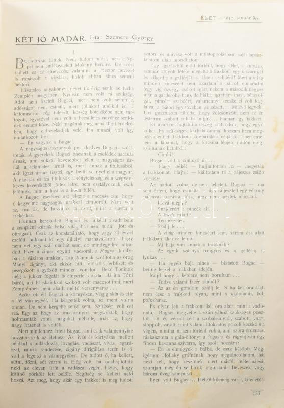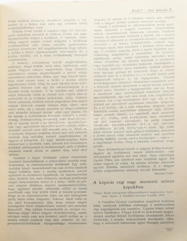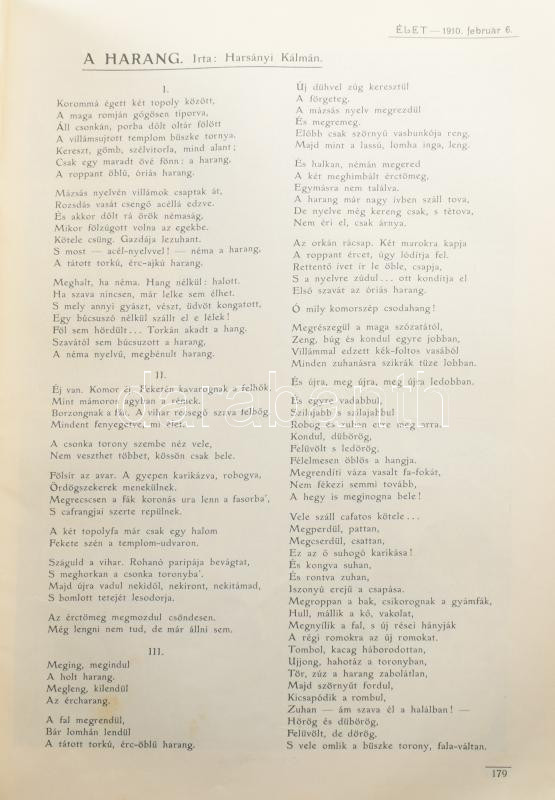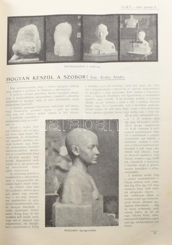 1910 Élet. Szépirodalmi és kritikai hetilap. II. évf. I-II. köt. (Teljes évfolyam 2 kötetben.) Szerk.: Andor József. Bp., 1910, Stephaneum-ny., VI+[2]+866 p.; VI+[2]+836 p. Fekete-fehér képekkel, hirdetésekkel. Félvászon-kötésben, nagyrészt jó állapotban.