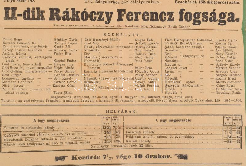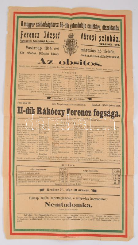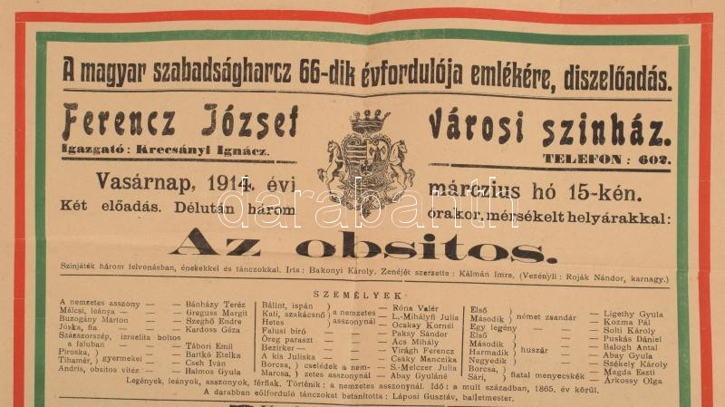 1914 Temesvár, a magyar szabadságharcz 66-dik évfordulója emlékére, díszelőadás plakátja. 30x44 cm