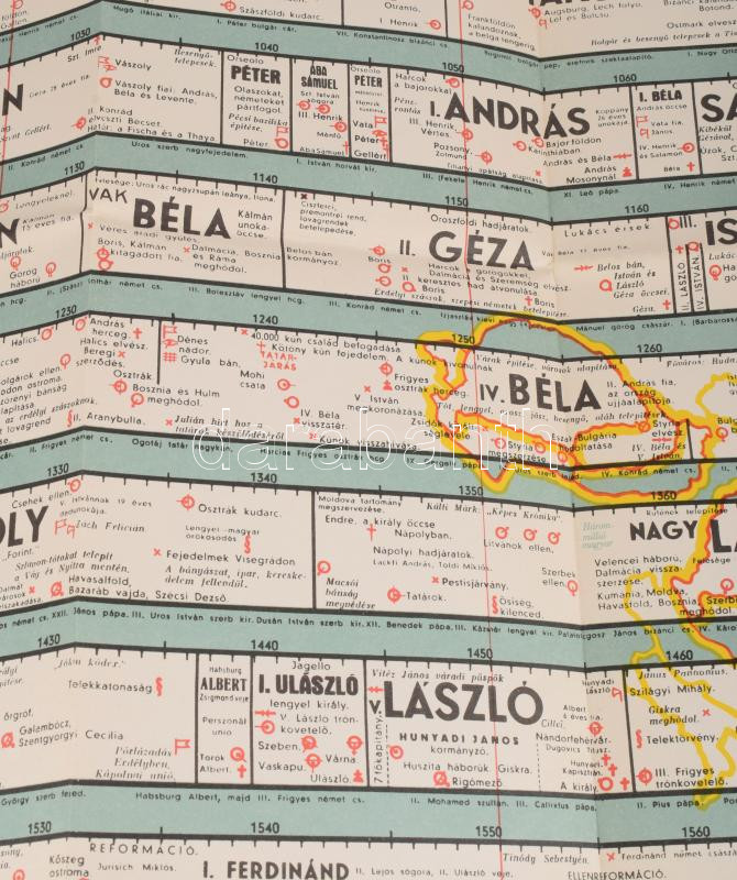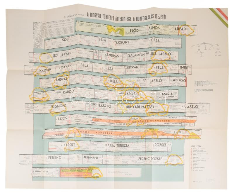 1991 Urmánczy Antal: A magyar történet áttekintése a honfoglalás korától, Grafikus történelem-ábrázolás I., reprint kiadás, 67x85 cm